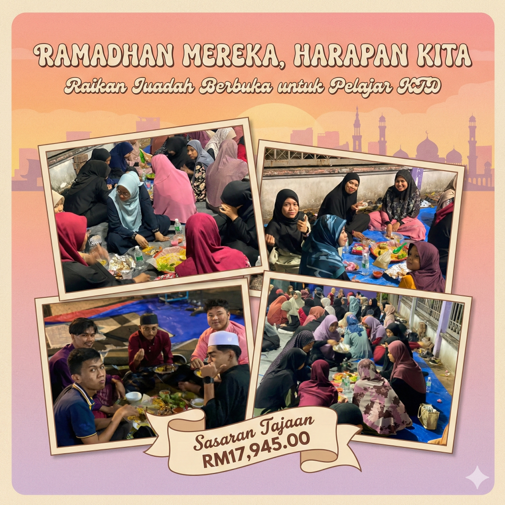 Setiap Ringgit yang anda sumbangkan akan terus mengurangkan beban kewangan pelajar B40 di asrama. Anda bukan sahaja memberi makan orang berpuasa (pahala yang besar!), tetapi juga mengangkat darjat mereka yang sedang berjihad menuntut ilmu.